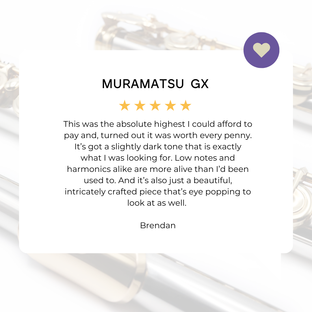 I didn’t buy this instrument without a lot of thought beforehand. The price was a big leap for me so by necessity there was a 5 month wait from deciding to go for it and pulling the lever. I had to sell a few treasures and also add to that with slicing off a bit of my meager income while waiting. This was the absolute highest I could afford to pay and, turned out it was worth every penny. This was a step up from an intermediate machine made, plated Yamaha that wasn’t a bad flute but sounded pretty thin compared to recordings of pro players I’d been listening to. Yes, technique is a big factor in the tone these players achieve but so were the instruments they were playing. And yes, many are playing $50-$100K beauties, and surely deserve them, but I’m as happy with my investment as they likely are with theirs. I’ll be gleefully playing my Muramatsu as long as I have the breath to do so. It’s got a slightly dark tone that is exactly what I was looking for. Low notes and harmonics alike are more alive than I’d been used to. And it’s also just a beautiful, intricately crafted piece that’s eye popping to look at as well. So yeah, I’m really pleased.