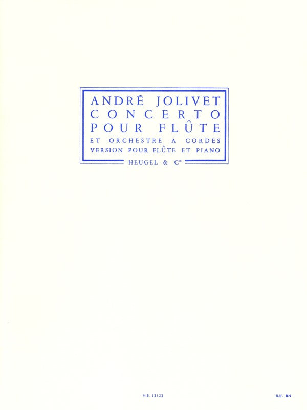 Concerto Pour Flûte Et Orchestre À Cordes (Flute and Piano) By Andre Jolivet, Published by Heugel, Includes flute part and piano score.