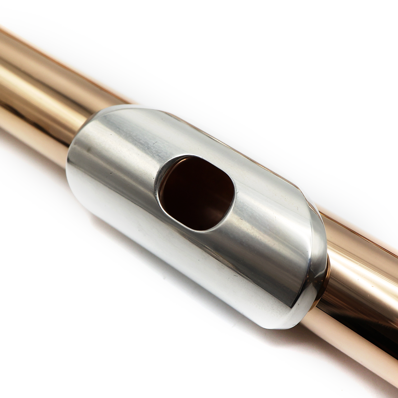- 9K gold hand-cut headjoint with sterling silver lip plate, riser and crown