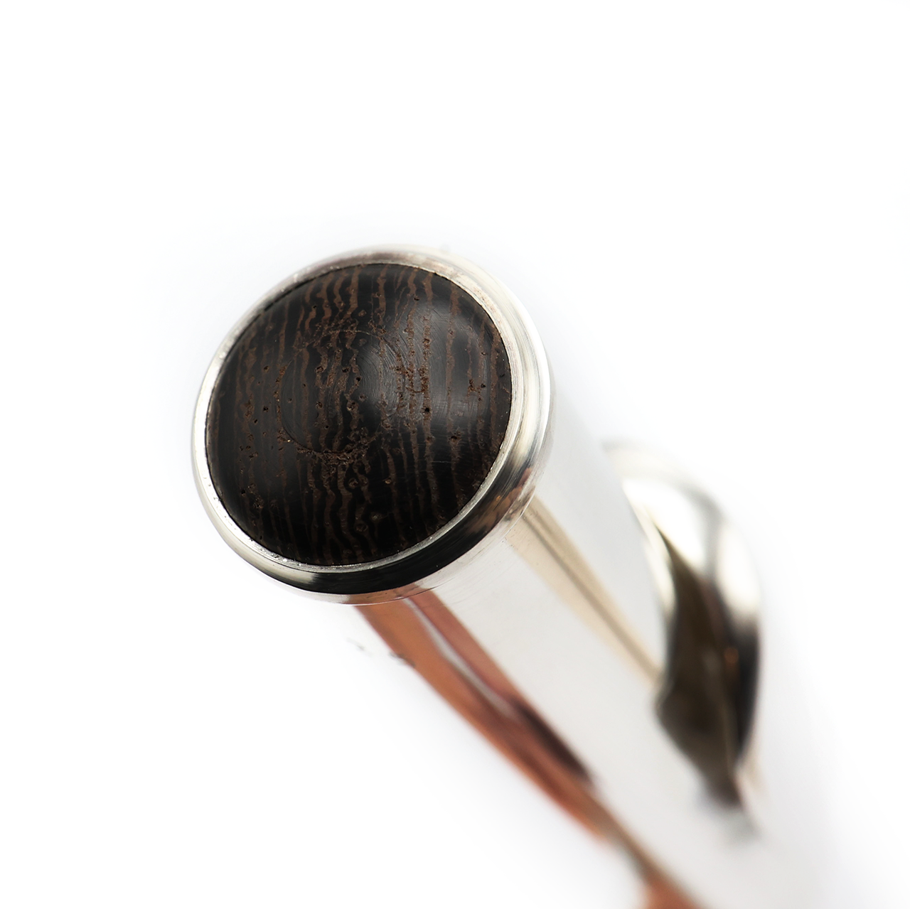 - Sterling silver tubing, plate and riser, and wenge wood crown