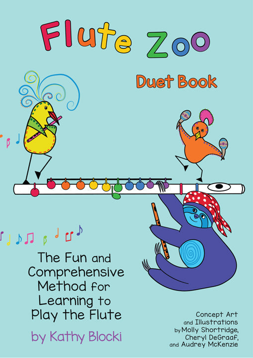 Flute Zoo Books are the new fun, and engaging way to learn to play the flute. These books, with their bright colors and cheerful imagery, were written with elementary age flute students in mind, although we have found that older children (and even adults) love the fun songs and activities as well! Each book is between 32 and 40 pages long. So the new flutist will gain a strong sense of accomplishments as they more quickly earn their certificate for Flute Zoo book one.