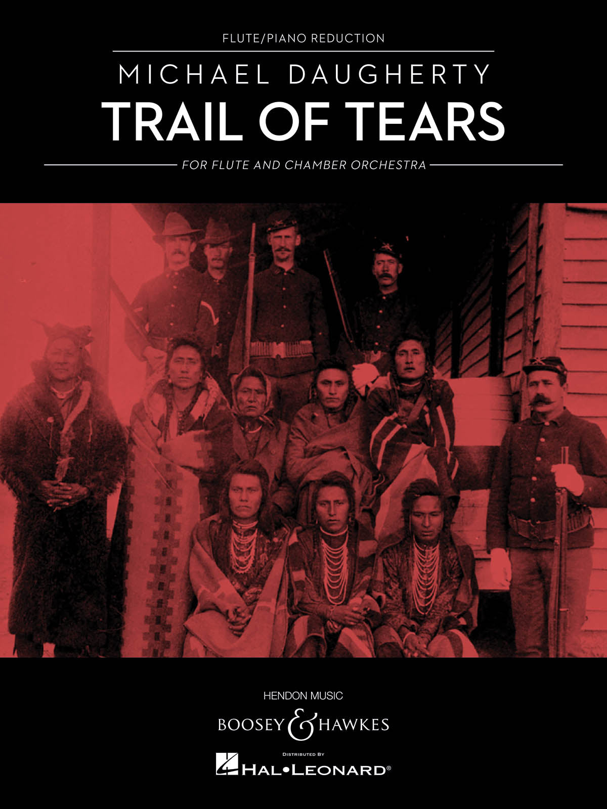 Trail of Tears for Flute and Chamber Orchestra (Flute and Piano) by Michael Daugherty, Published by Boosey and Hawkes, includes flute part and piano score.