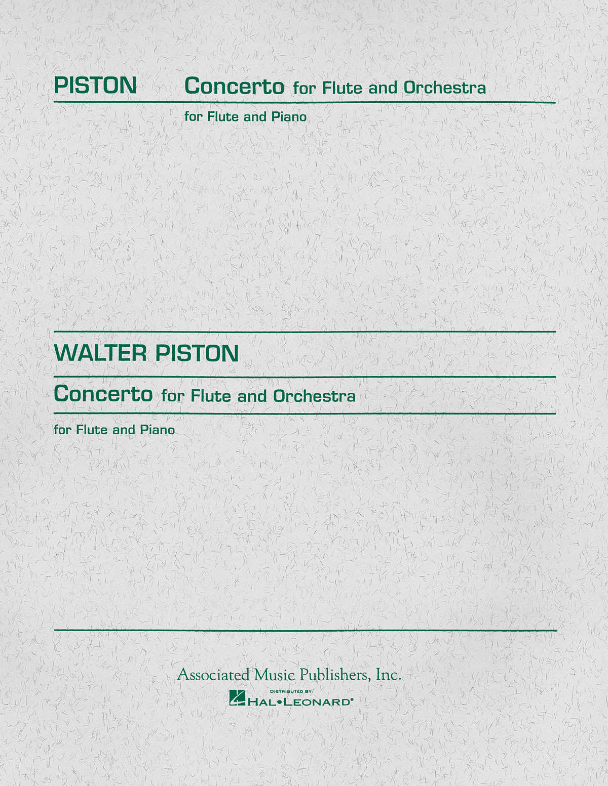Concerto for Flute and Orchestra (Flute and Piano) By Walter Piston, Published By Hal Leonard.