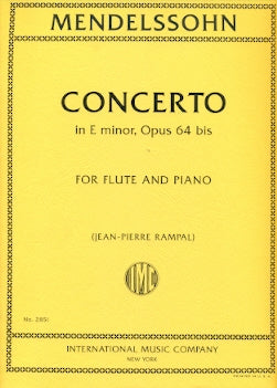 Concerto in E Minor, Op. 64, By Felix Mendelssohn, Arranged for Flute and Piano By Jean Pierre Rampal, Published By International Music Company.