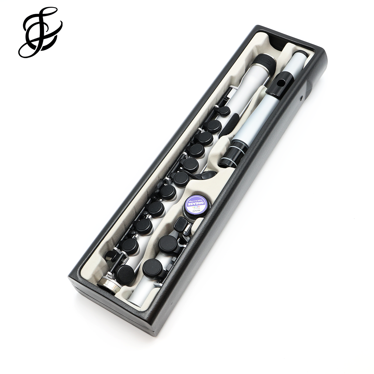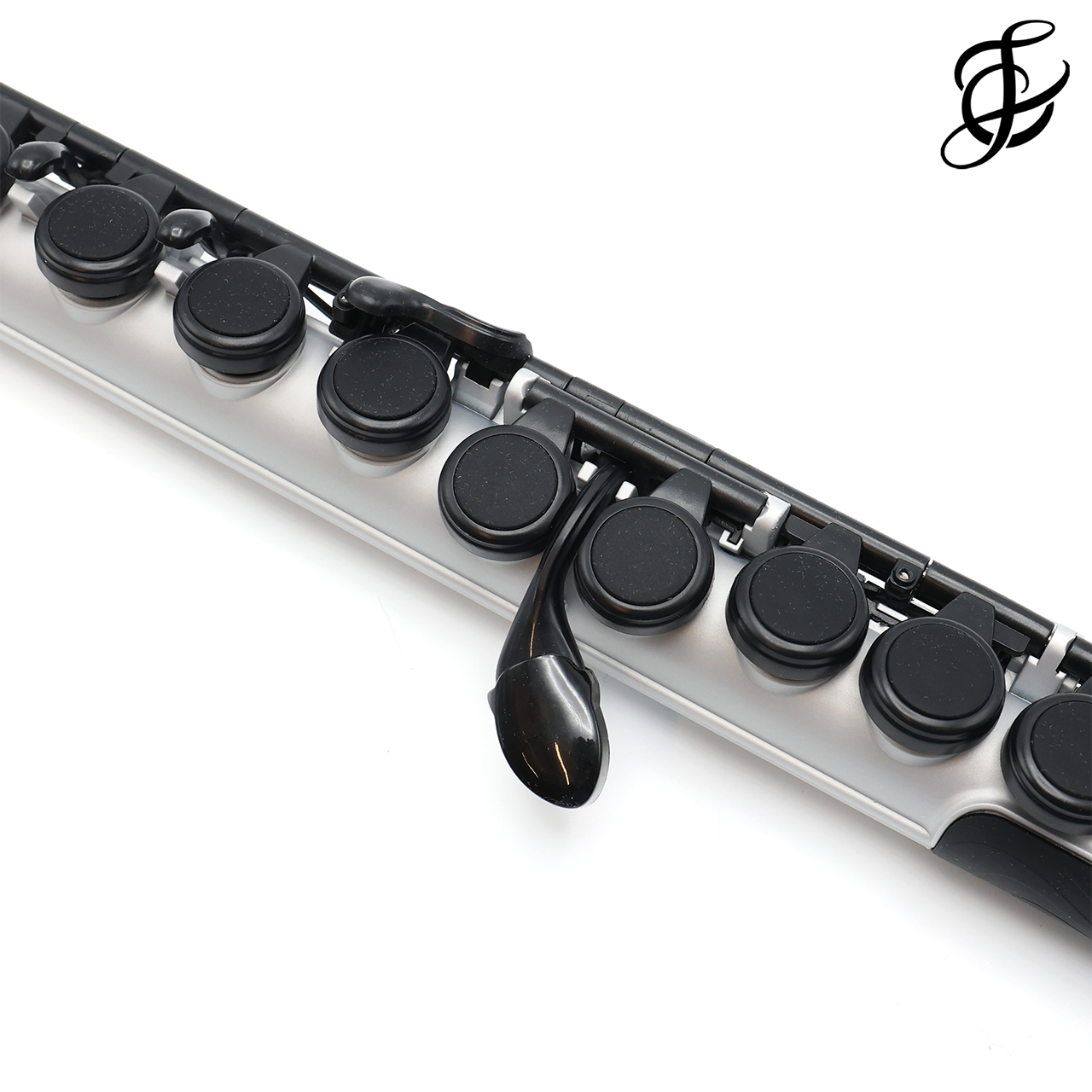 The NUVO Student Flute is designed with beginners in mind, offering the feel and performance of a traditional silver flute. It features a straight head joint with both standard and Firstnote lip plates, making sound production easy for new players while promoting proper technique as they advance. Silicone soft-touch keys ensure comfort and allergy safety, while the C foot joint provides a full range of notes.