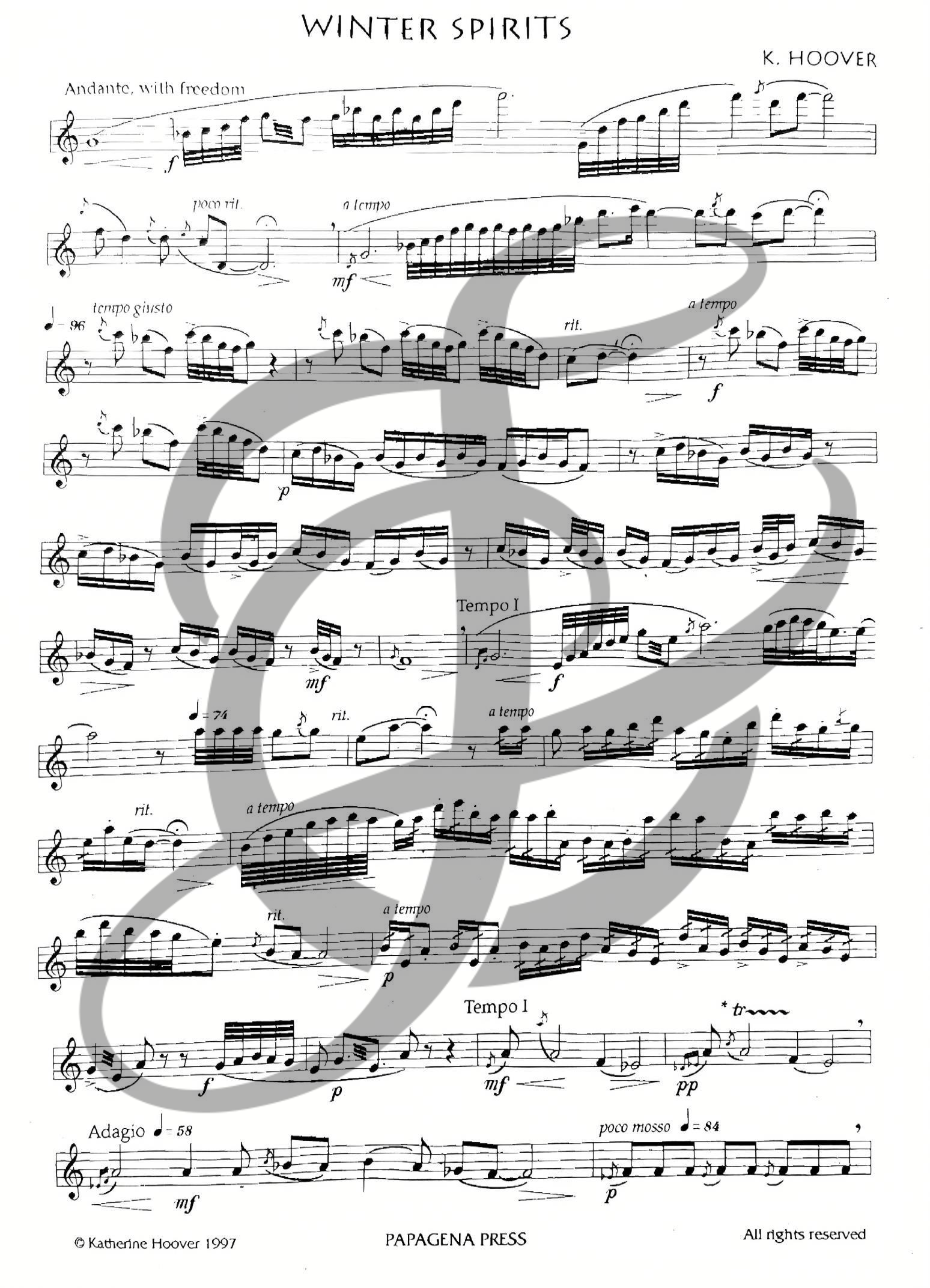 Winter Spirits (Flute Alone) By Katherine Hoover, Published by Papagena Press.