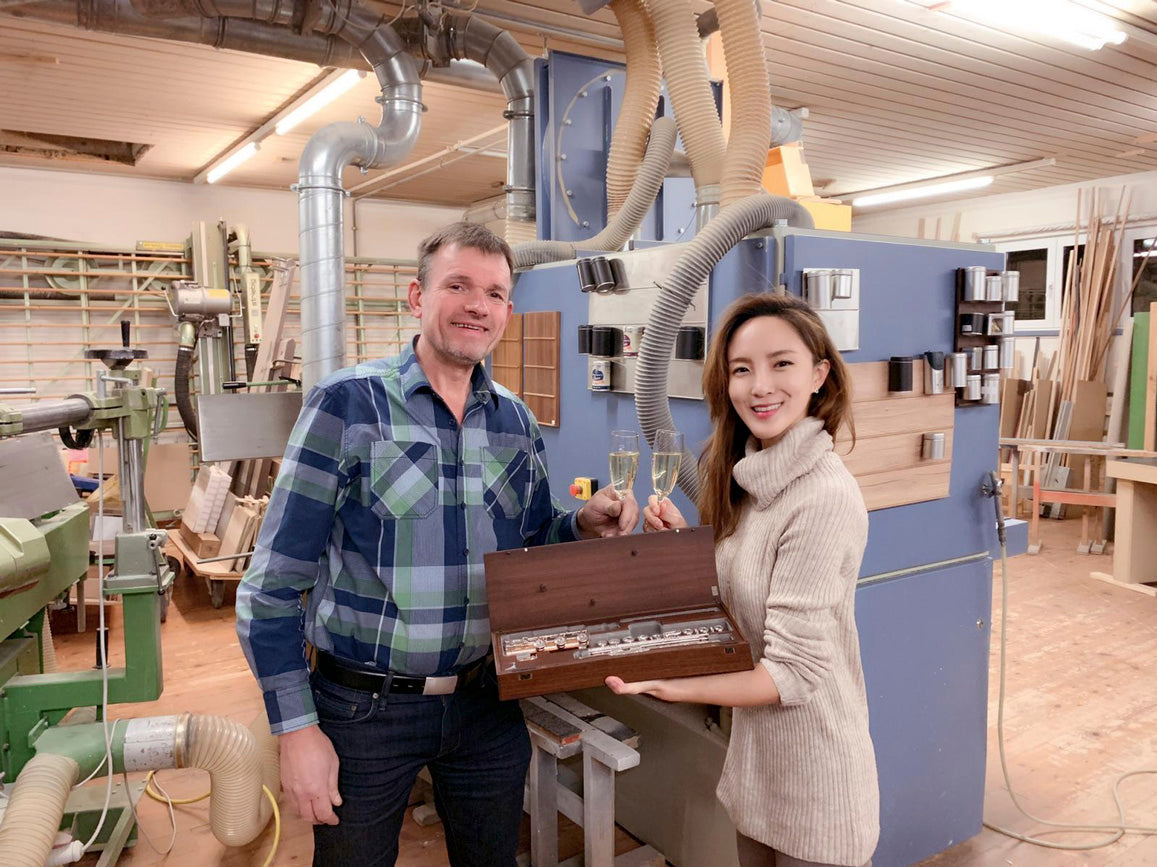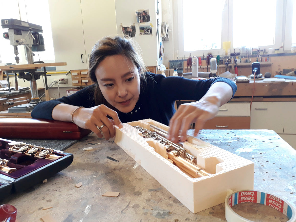 Developed with international flute star Jasmine Choi, the SmartCase is the world's safest flute case. This handmade case features small wheels that that adjust to perfectly fit the length of your flute - no more flute rattling around in its' case! Every point at which the flute comes into contact with the case is clad with soft foam, to support and protect your delicate instrument. The SmartCase is lightweight, weighing approximately 650 grams, while standard cases weigh 850 grams. The SmartCase is smaller, too, so it fits in your bags more easily (4 cm shorter than standard cases.)