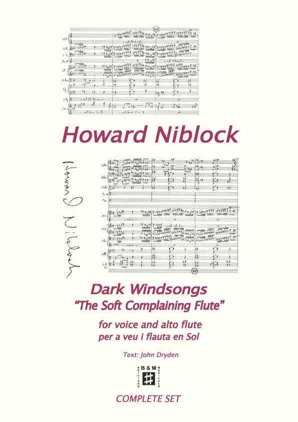 “The Soft Complaining Flute” by Howard Niblock is a musical setting for voice and alto flute of a text by John Dryden, it forms part of the series Dark Windsongs.