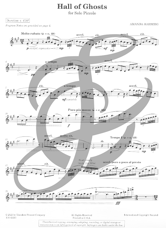 Hall of Ghosts (Piccolo) By Amanda Harberg, Published By Theodore Presser Company.