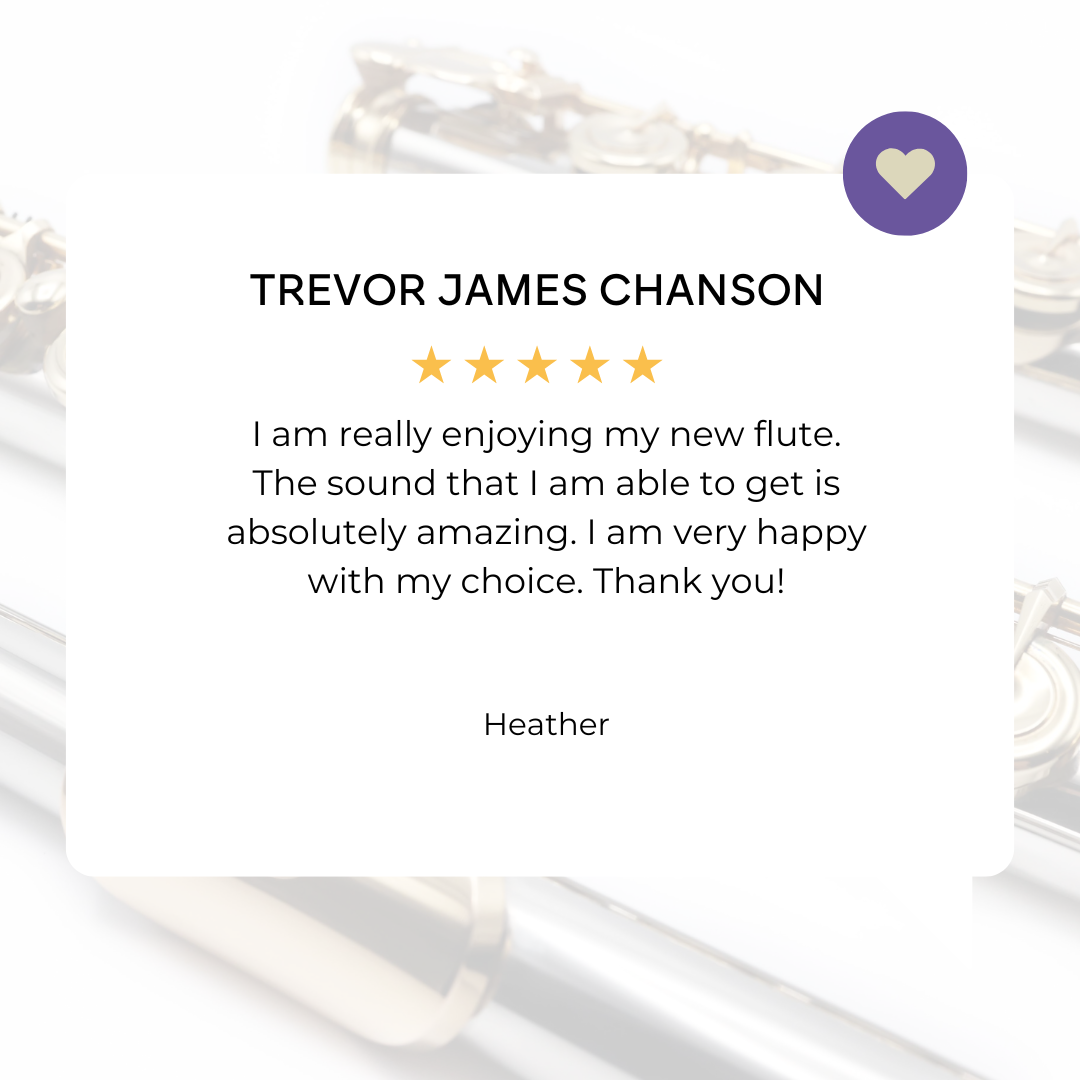I am really enjoying my new flute. The sound that I am able to get is absolutely amazing. I am very happy with my choice. Thank you!