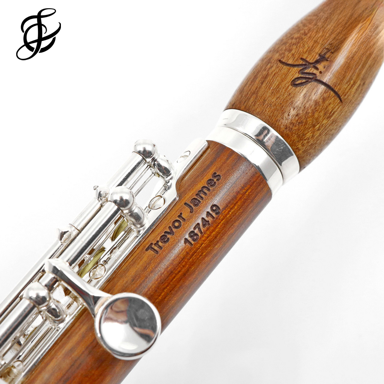 The TJ Mopane Piccolo is a great instrument for all players! I use this Piccolo if I’m wanting a brighter sound. The player will find how easy it is to maintain stability in all registers. I highly recommend this instrument for anyone that is interested in exploring different woods and having options in their Piccolo arsenal. This piccolo comes with a classic black case cover with “fluffy” white lining and a beautiful cherry wood case with the signature TJ purple interior!