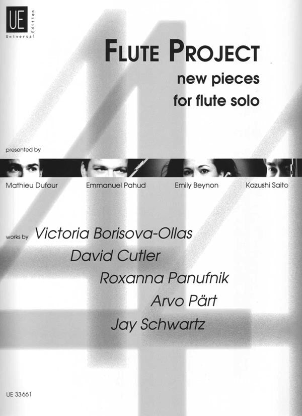 Four young stars of the international flute scene, in cooperation with leading composers, present new pieces for flute solo. Emmanuel Pahud, Emily Beynon, Kazushi Saito and Mathieu Dufour have approached Arvo Pärt, Roxanna Panufnik, Jay Schwartz, Victoria Borisova-Ollas and David Cutler, requesting short and accessible pieces.