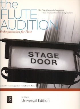 The Flute Audition - The New Essential Companion (Reference Work, Orchestral Excerpts), published by Universal Editions, edited / arranged by Henrik Wiese, includes soft-cover book, 101 pages. Written in 2017.